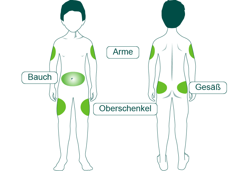 - Bitte besprechen Sie mit Ihrem Arzt, welche Stellen Ihres Körpers am besten zur Injektion geeignet sind.
